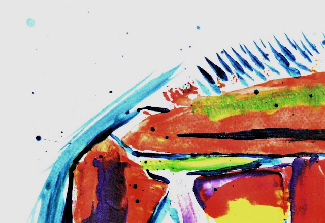 Abstract colourful acrylic painting on paper 32 x 24 cm.
